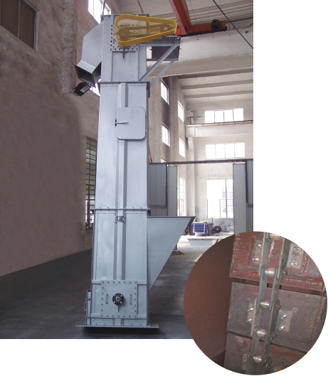 TH型链式斗提机载荷大,便于颐养,可用于保送量较大,密度>1.5t/m3的颗粒状或小块物料的保送。